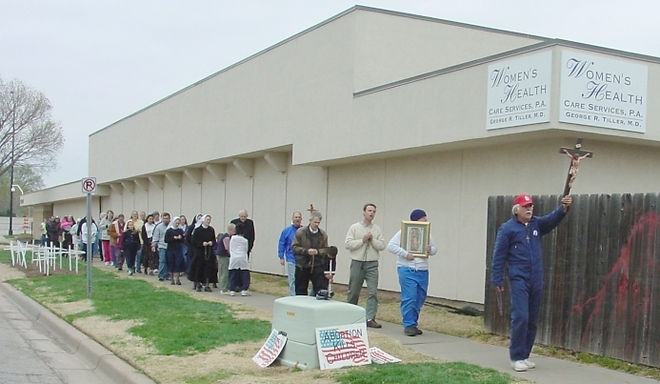 Soldiers for Christ pray for the end to the slaughter of innocents at Tiller the Killer's.